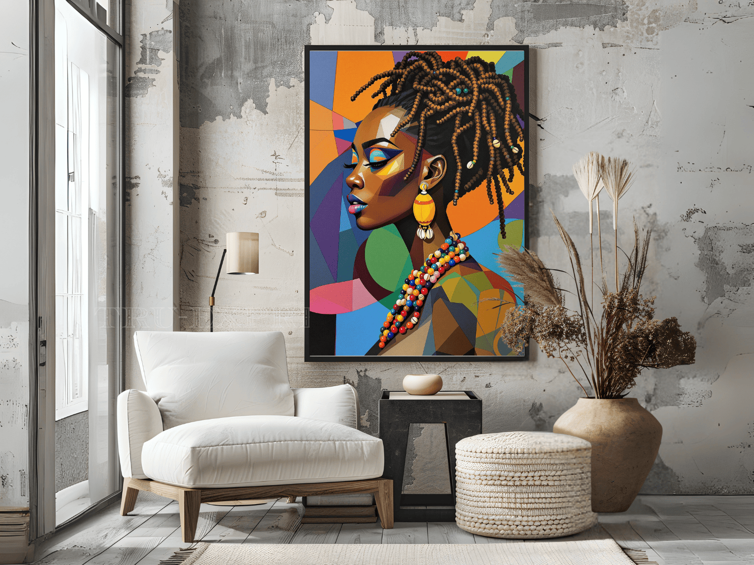 Don't limit bold geometric art to just living rooms and offices. In a bedroom, a vibrant geometric portrait art print for modern decor can introduce an element of sophisticated calm or dynamic personality, depending on the piece. While often associated with serenity, a touch of bold art can prevent a bedroom from feeling bland. Place it above the headboard or on a prominent wall. In an entryway or hallway, a statement piece immediately sets the tone for your home, welcoming guests with a glimpse into your aesthetic sensibilities. An unframed geometric art print regal woman placed here can create an immediate impression of elegance and strength, guiding the eye through the space and making a memorable first statement.