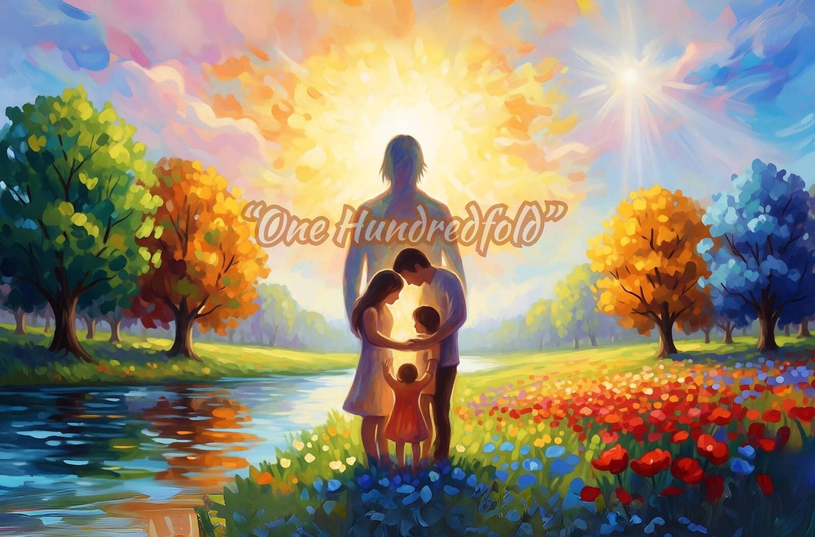 This painting is a celebration of the promise Jesus gives to those who choose to follow Him with open hands and surrendered hearts. It is not a promise of ease, but one of abundance — a supernatural return of purpose, spiritual family, and eternal hope.