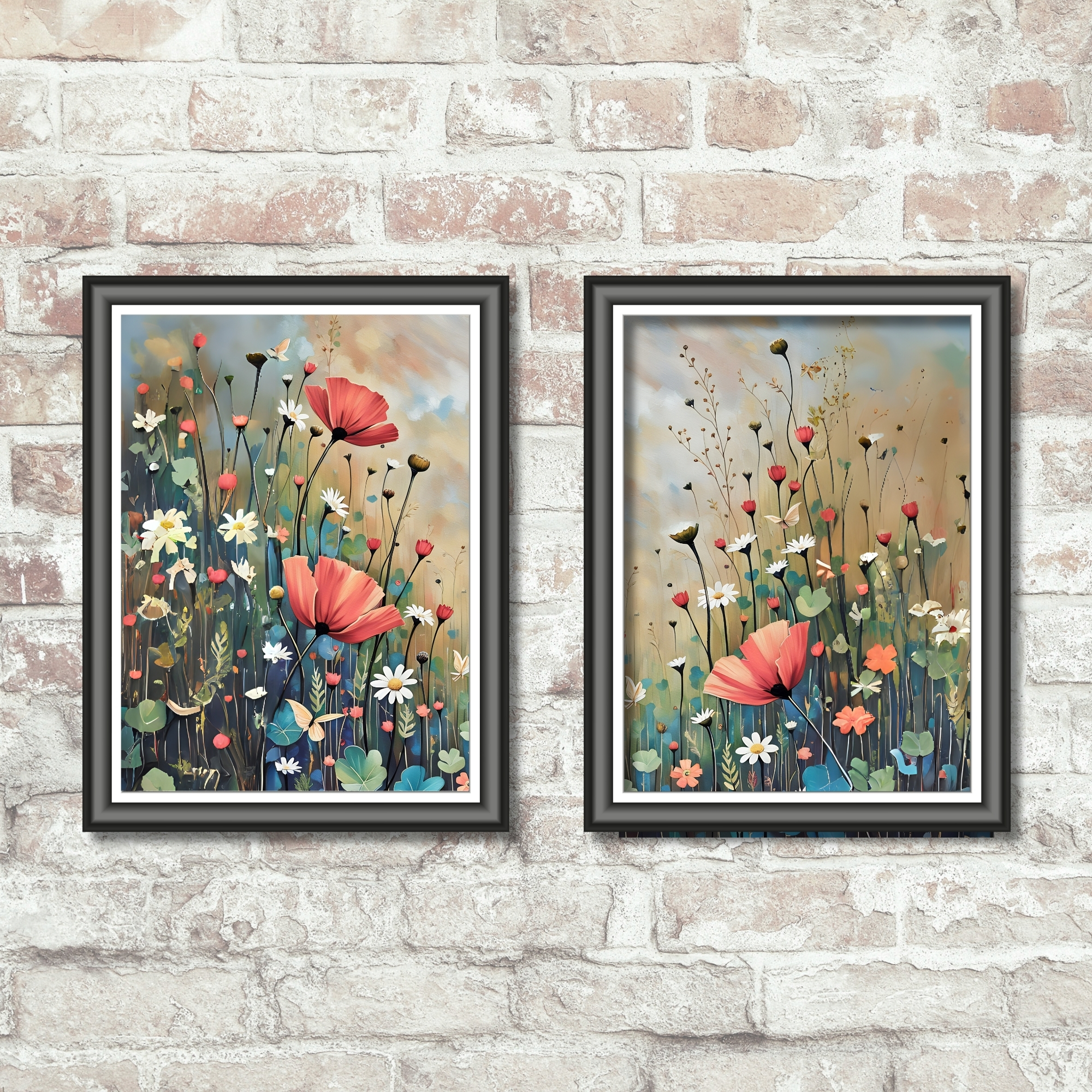 Bring the tranquil beauty of the outdoors into your home with this premium wildflower canvas art set. Featuring two vibrant, painterly panels of blooming poppies, daisies, and delicate meadow flowers, this unframed print duo captures the charm of a countryside garden. Printed on museum-quality canvas, these pieces make a timeless statement in bedrooms, living areas, or entryways — or a thoughtful gift for garden and nature lovers.